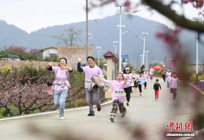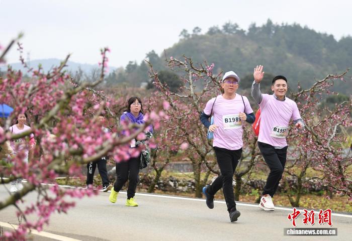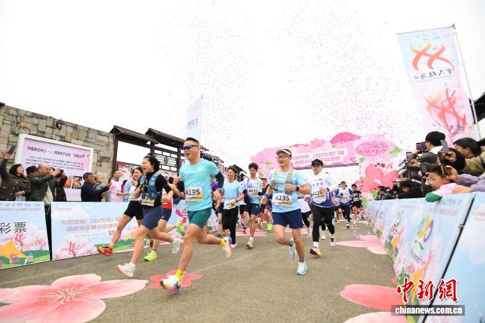 图为3月21日,跑步喜好者正在“奔走贵阳·2026第8届北亮永乐桃花平地跑”举动现场摄影挨卡。赵紧 摄